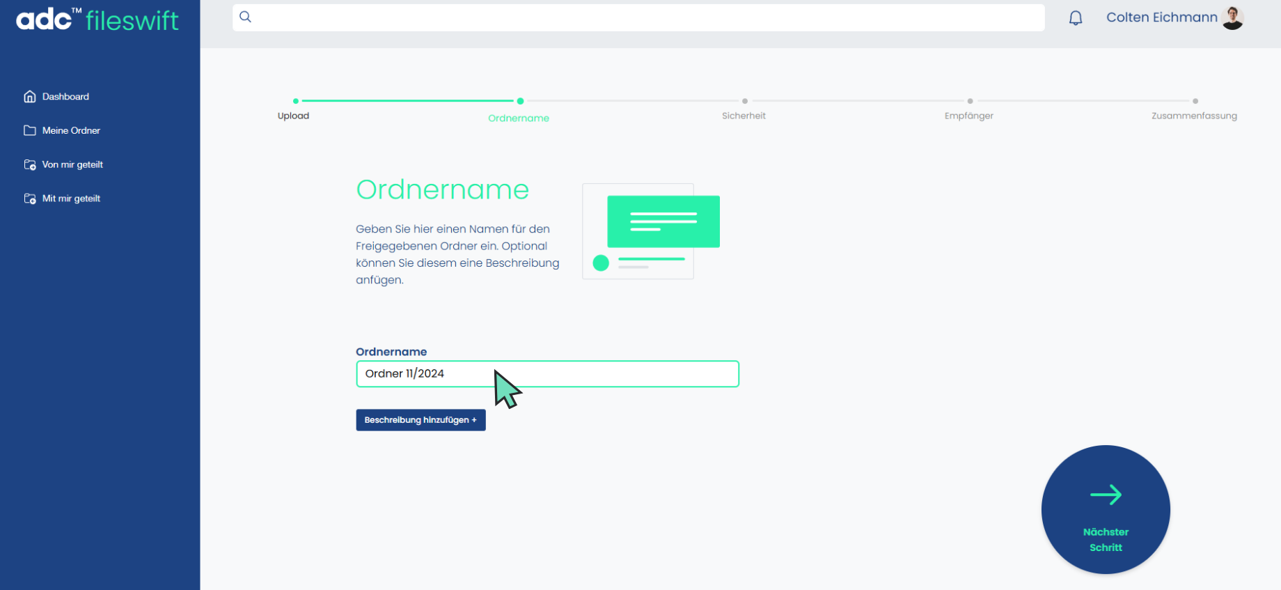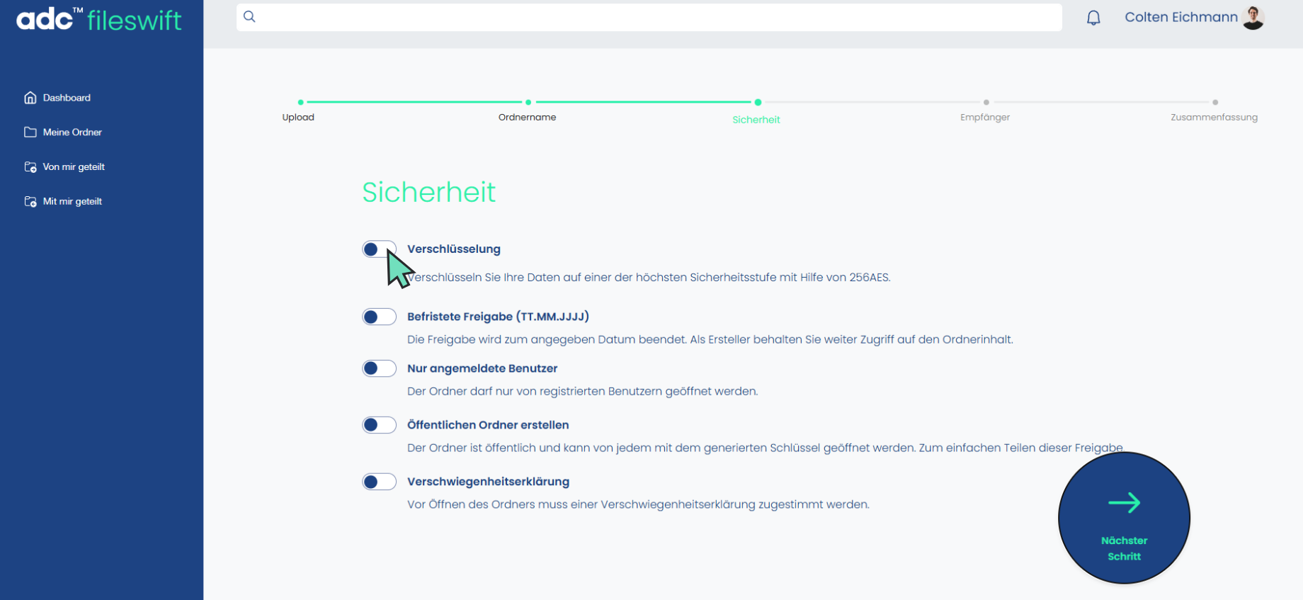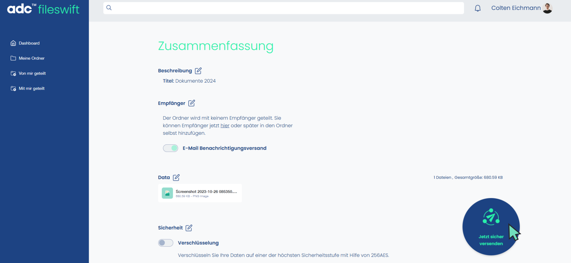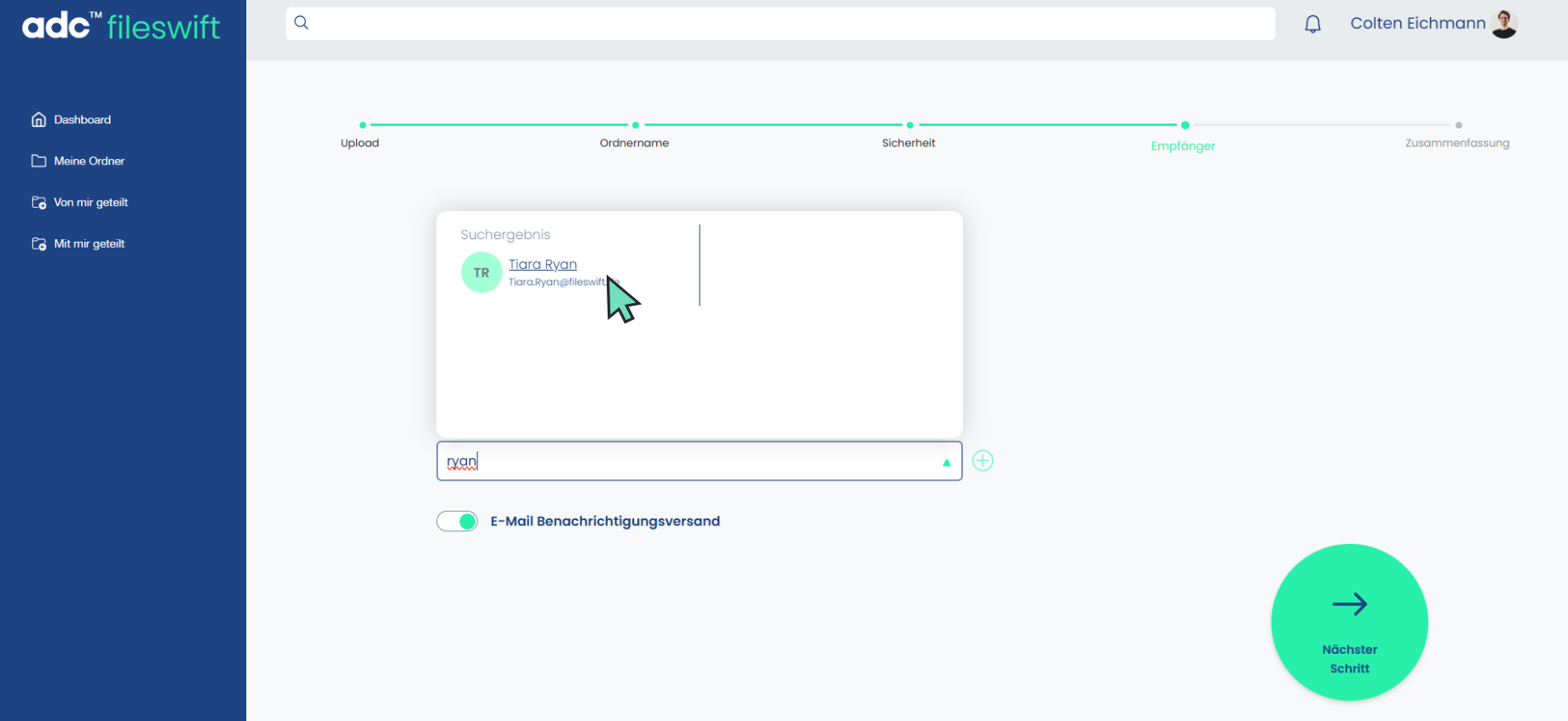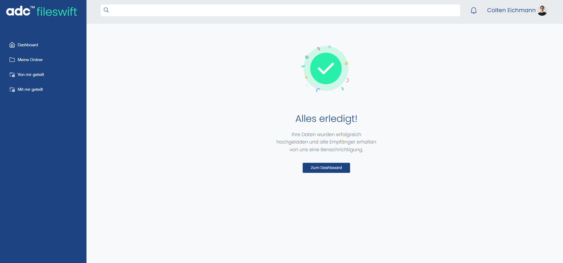 Ihre Daten werden jetzt hochgeladen und der Zugangslink wird an die ausgewählten Empfänger verteilt.